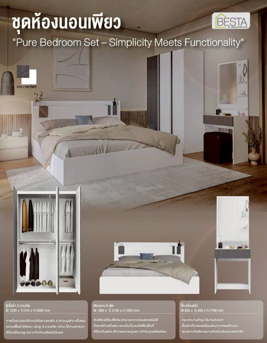 ชุดห้องนอน Pure ได้4ชิ้น ประกอบด้วย: